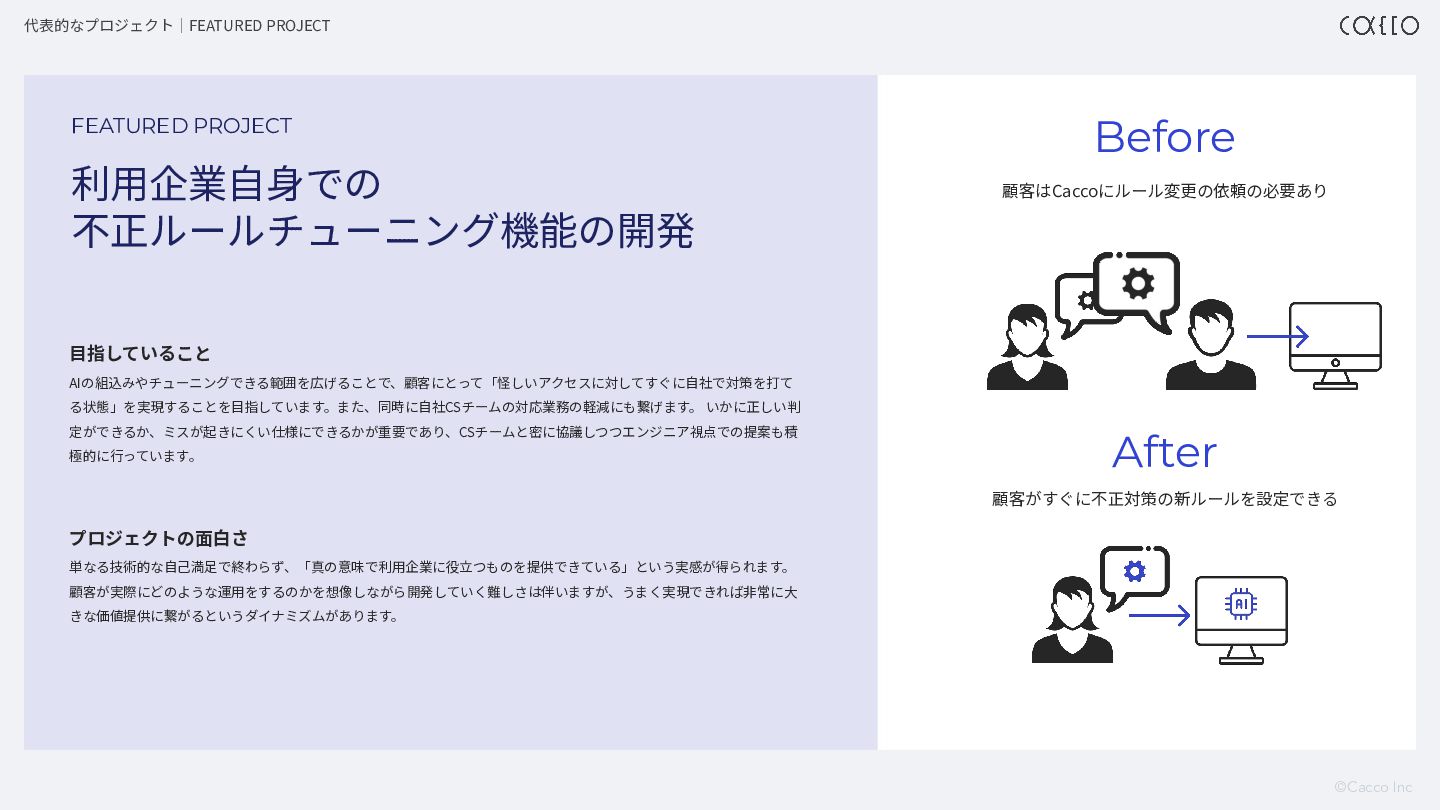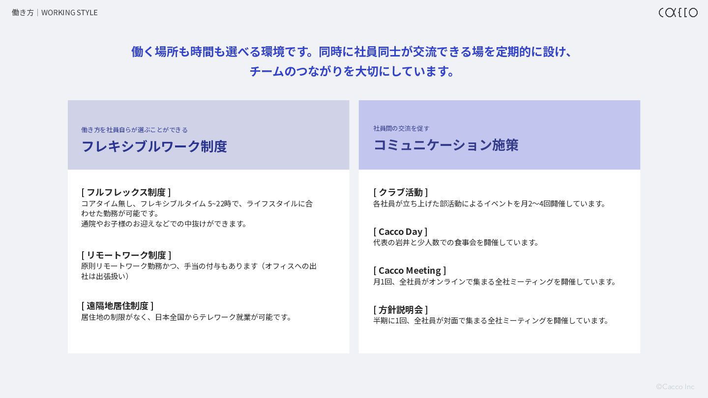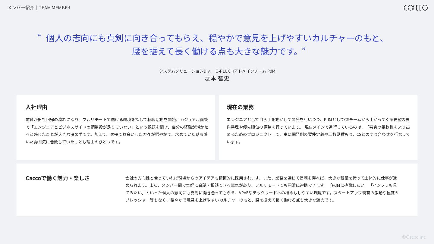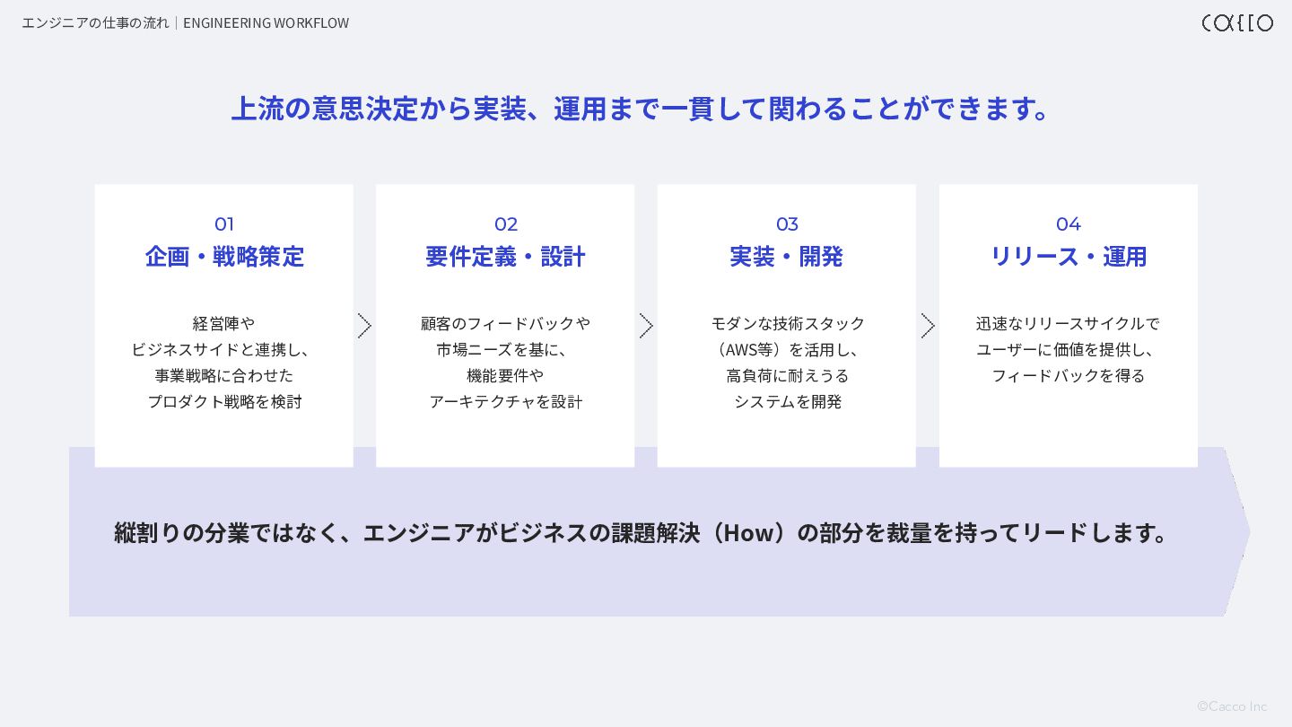 ツール AWSの主な利⽤サービス AWSの主な利⽤サービス EC2, ECS, Lambda, API Gateway, App Runner, AppSync, Step Functions, Amplify, Cognito, S3, SQS, SNS, Kinesis Data Firehose, Athena, Glue, DynamoDB, Amazon OpenSearch Service, Amazon Redshift ECS, Aurora(MySQL), Lambda, SQS, SES, Route53, ACM, CloudWatch, S3, Redshift, EC2,Aurora(MySQL), Redshift, DynamoDB TypeScript, Java(Javaで稼働しているバックエンドを Kotlinやnode.js等へのリプレースを計画中) Kotlin, Java, Python, JavaScript(TypeScript), Vue.js, Node.js Infrastructure as Code(IaC), SpringBoot, React.js, Next.js, AWS SAM, AWS CDK Micronaut Slack,Zoom,Googlemeet Slack,Zoom,Googlemeet Mac Mac Github Github Notion Backlog、NotePM プログラミング⾔語 プログラミング⾔語 フレームワーク フレームワーク プロジェクト管理、 情報共有ツール プロジェクト管理、 情報共有ツール ⽀給マシン ⽀給マシン ソースコード管理 ソースコード管理
