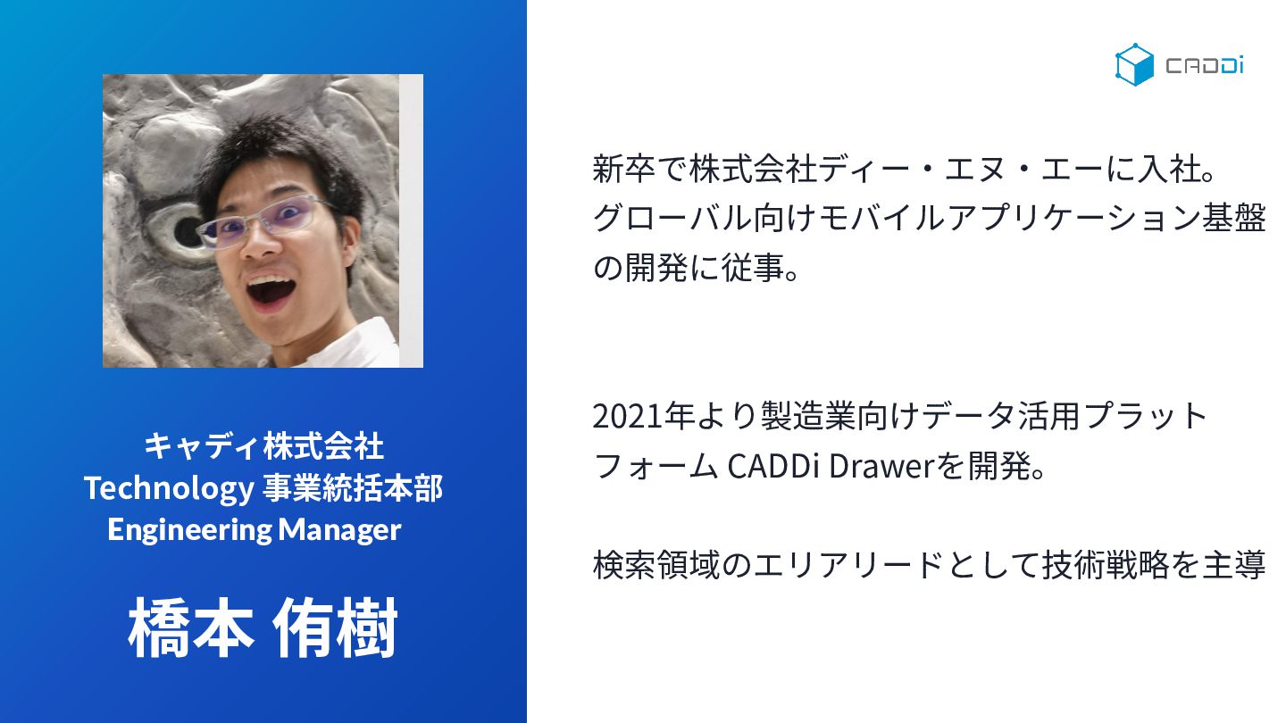 1. © CADDi Inc. キャディ株式会社 Technology 事業統括本部 Engineering Manager 橋本 侑樹