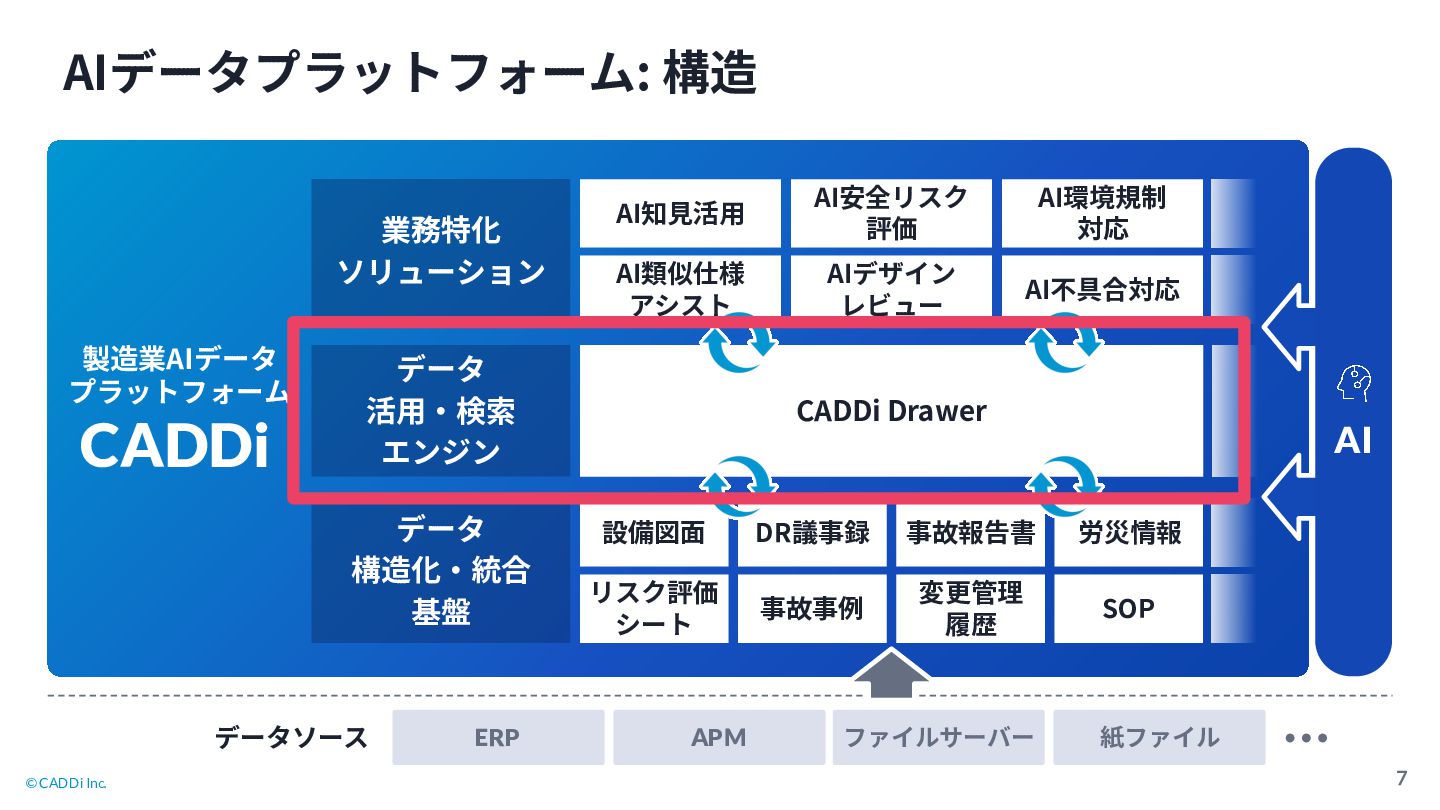 5. © CADDi Inc. 7 AIデータプラットフォーム: 構造 データソース ERP APM ファイルサーバー