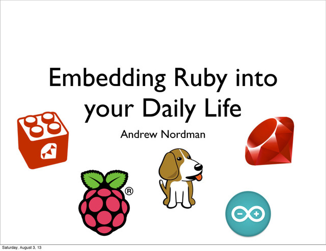 Many Rubyists know Ruby for its ease of use as a web scripting language. Many sysadmins know Ruby for its server provisioning capacity and as a glue language to the shell. Many Rubyists don't know about how Ruby can be used in the world of embedded computing and microcontrollers to assist your daily life. Mruby expands the capabilities to robotics and hobby electronics, as well as small-scale automation. Learn about ways to embed ruby into your daily life with heat control, plant watering, helpful robots, and more.