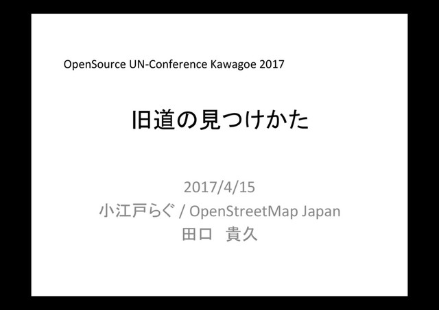 2017/4/15 / OpenStreetMap Japan OpenSource UN-Conference Kawagoe 2017
