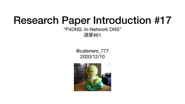 , Murali Ramanujam, Noa Zilberman • University of Cambridge • ANCS ’19 • EuroP4_2019 • https://p4.org/assets/EuroP4_2019/EuroP4-2019-slides-02.pdf • ຊମ • https://github.com/cucl-srg/P4DNS • OxfordͰͷIn-network computingݚڀϦετʢʁʣ • https://eng.ox.ac.uk/computing/projects/in-network-computing/