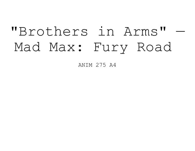 A reinterpretation of the scene "Brothers in Arms" (or the canyon scene) from Mad Max: Fury Road for my ANIM 275 final.