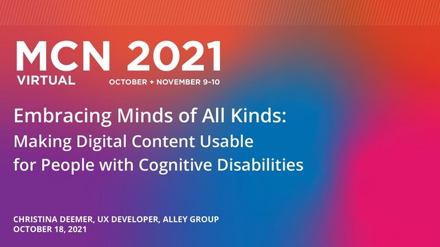 people with cognitive disabilities experience with digital projects. Recognize design patterns recommended by the W3C for making content usable by people with cognitive disabilities. Utilize those design patterns in your digital work. Advocate for incorporating these design patterns into your work during all lifecycle stages of a digital project