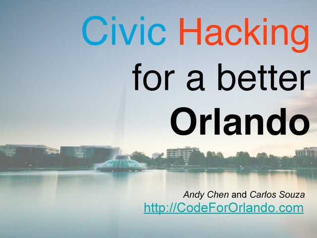A talk presented at BarCamp Orlando 2013 about Civic Hacking, OpenData and example of civic applications and initiatives from around the country.