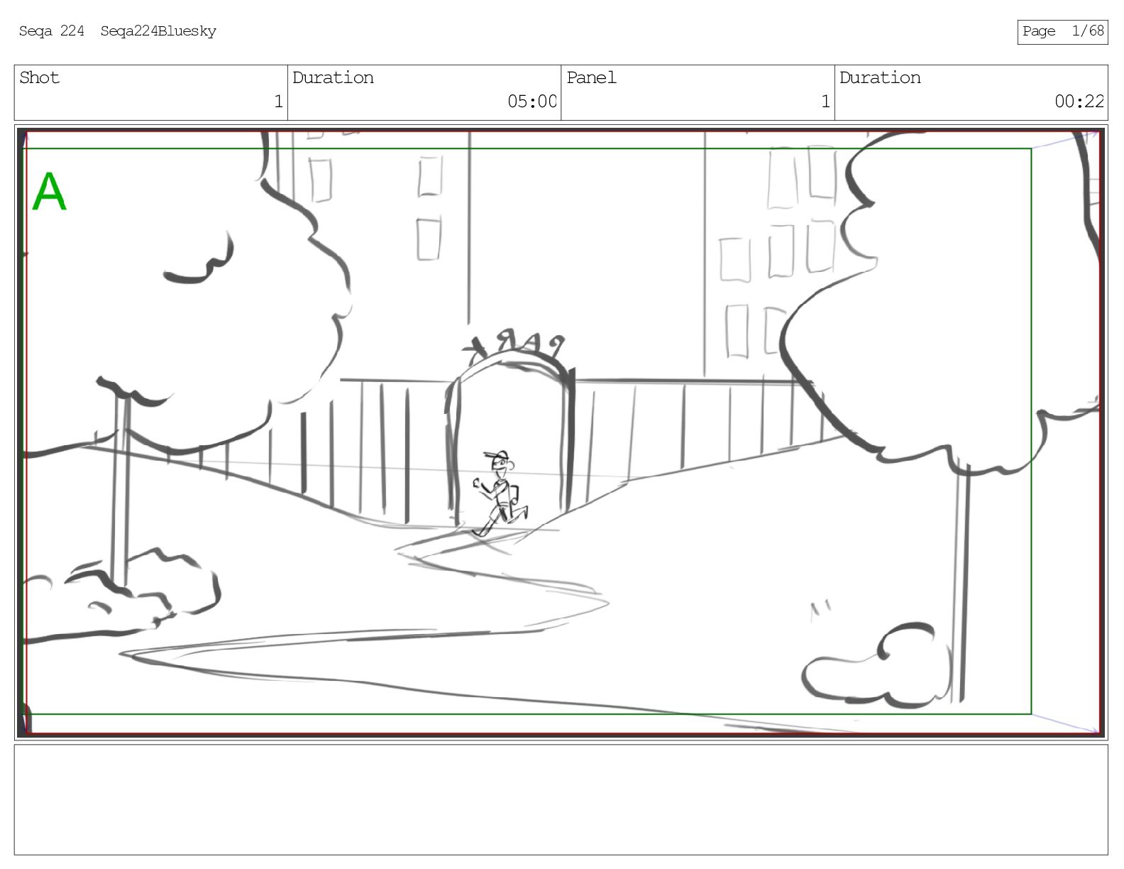 Shot 1 Duration 05:00 Panel 1 Duration 00:22 Seqa 224