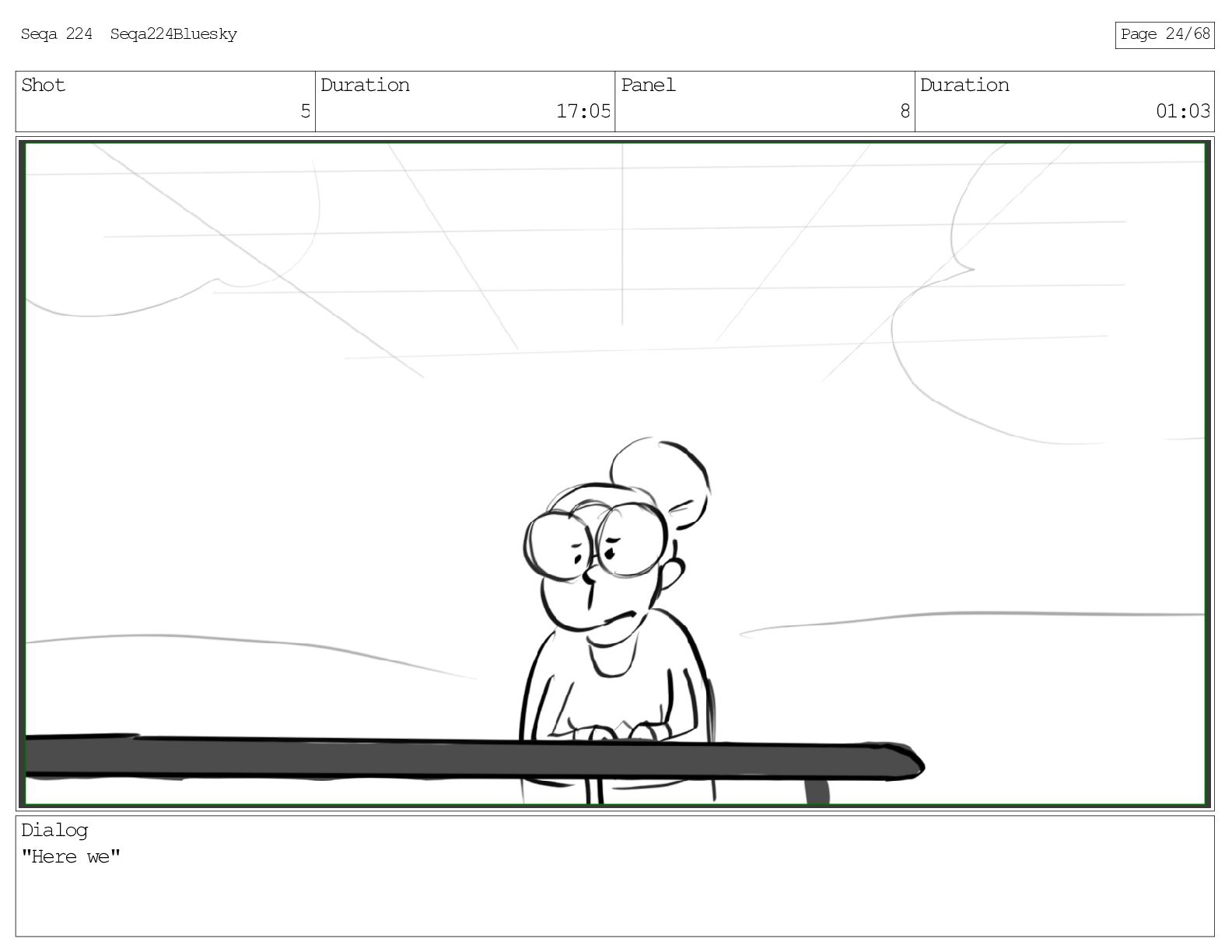 Shot 5 Duration 17:05 Panel 8 Duration 01:03 Dialog "Here