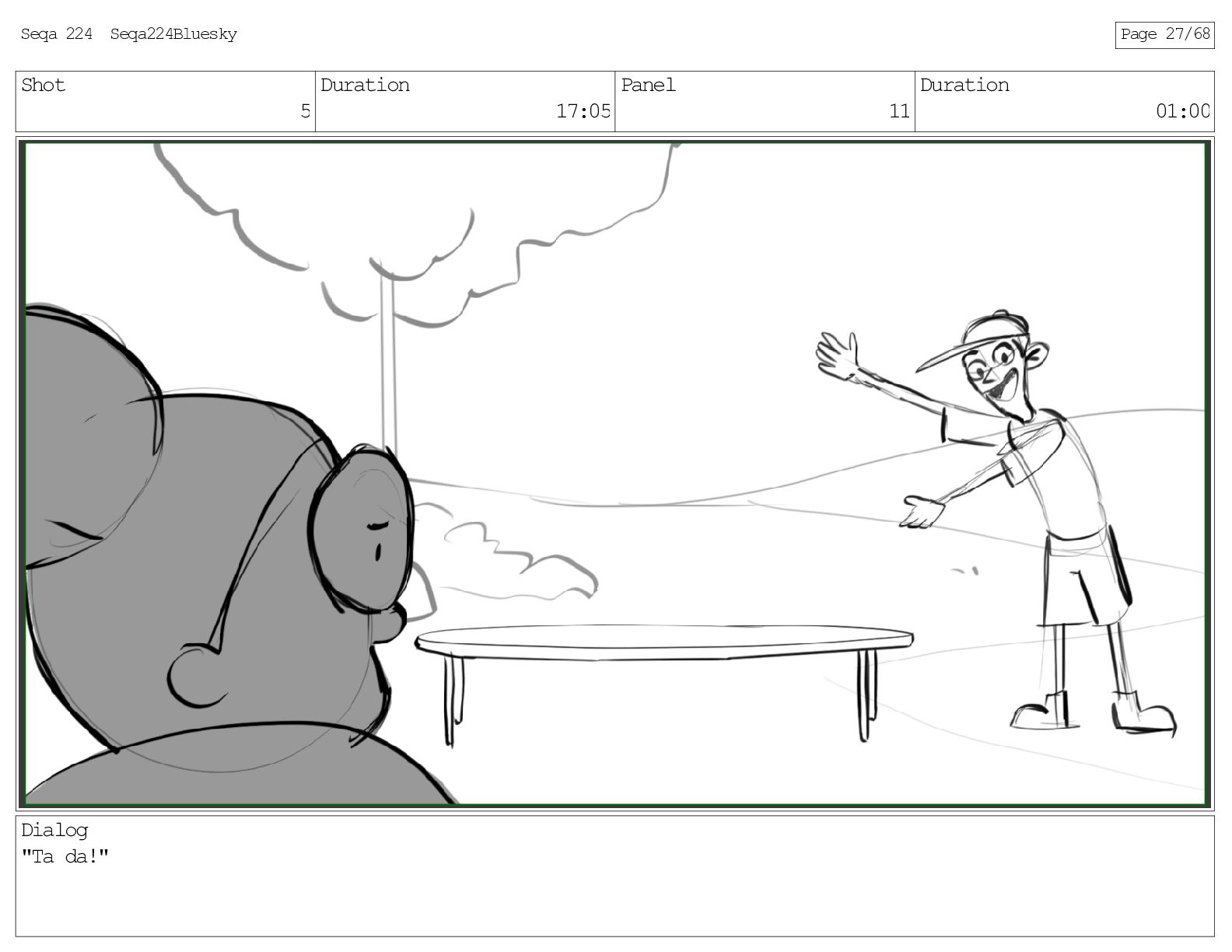 Shot 5 Duration 17:05 Panel 11 Duration 01:00 Dialog "Ta