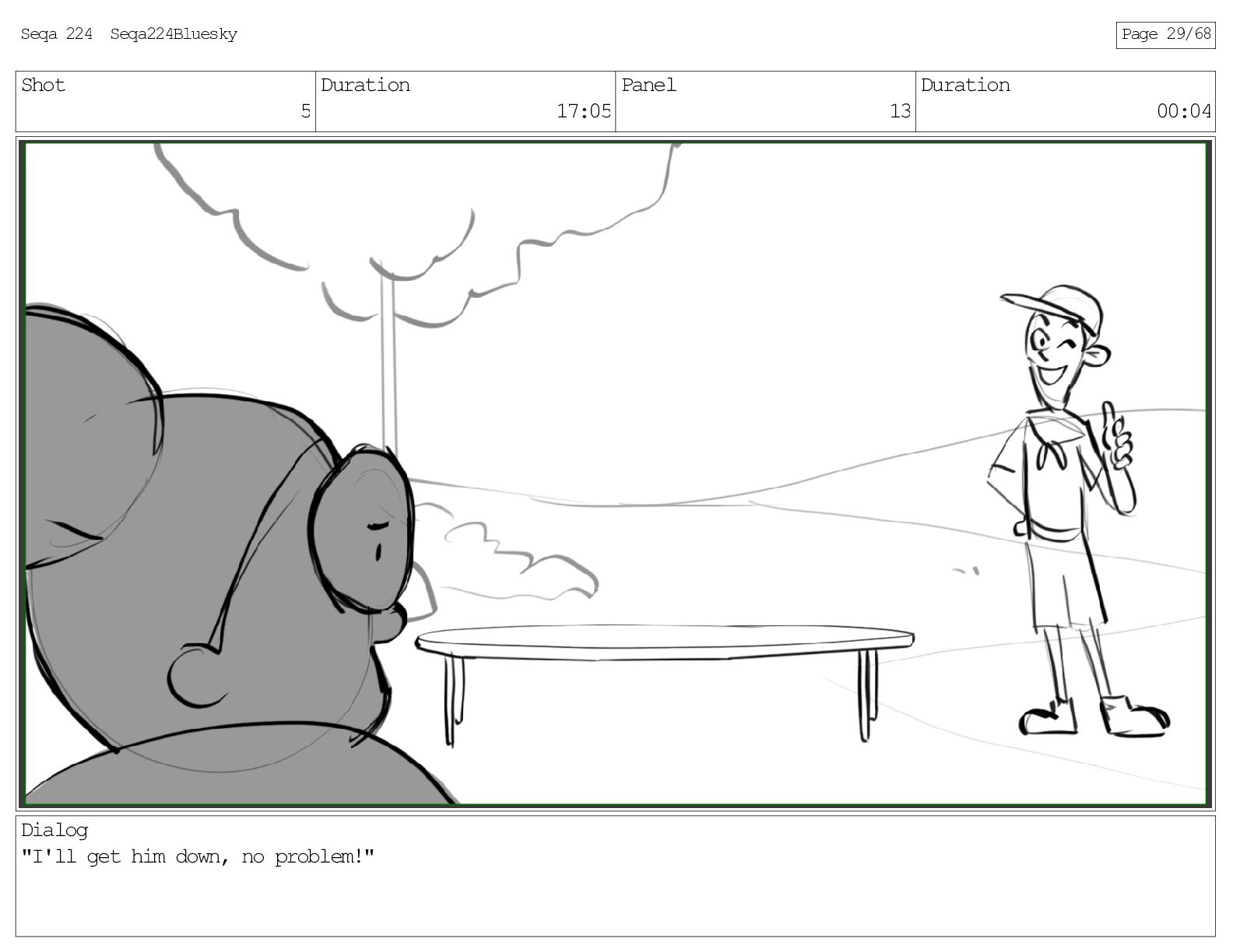 Shot 5 Duration 17:05 Panel 13 Duration 00:04 Dialog "I'll