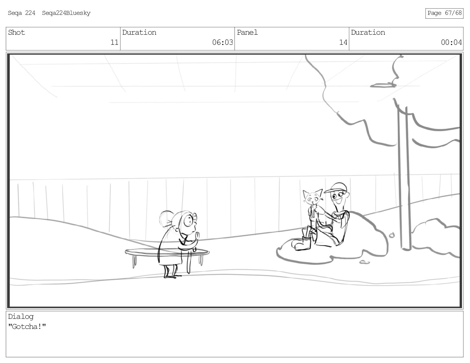 Shot 11 Duration 06:03 Panel 14 Duration 00:04 Dialog "Gotcha!"