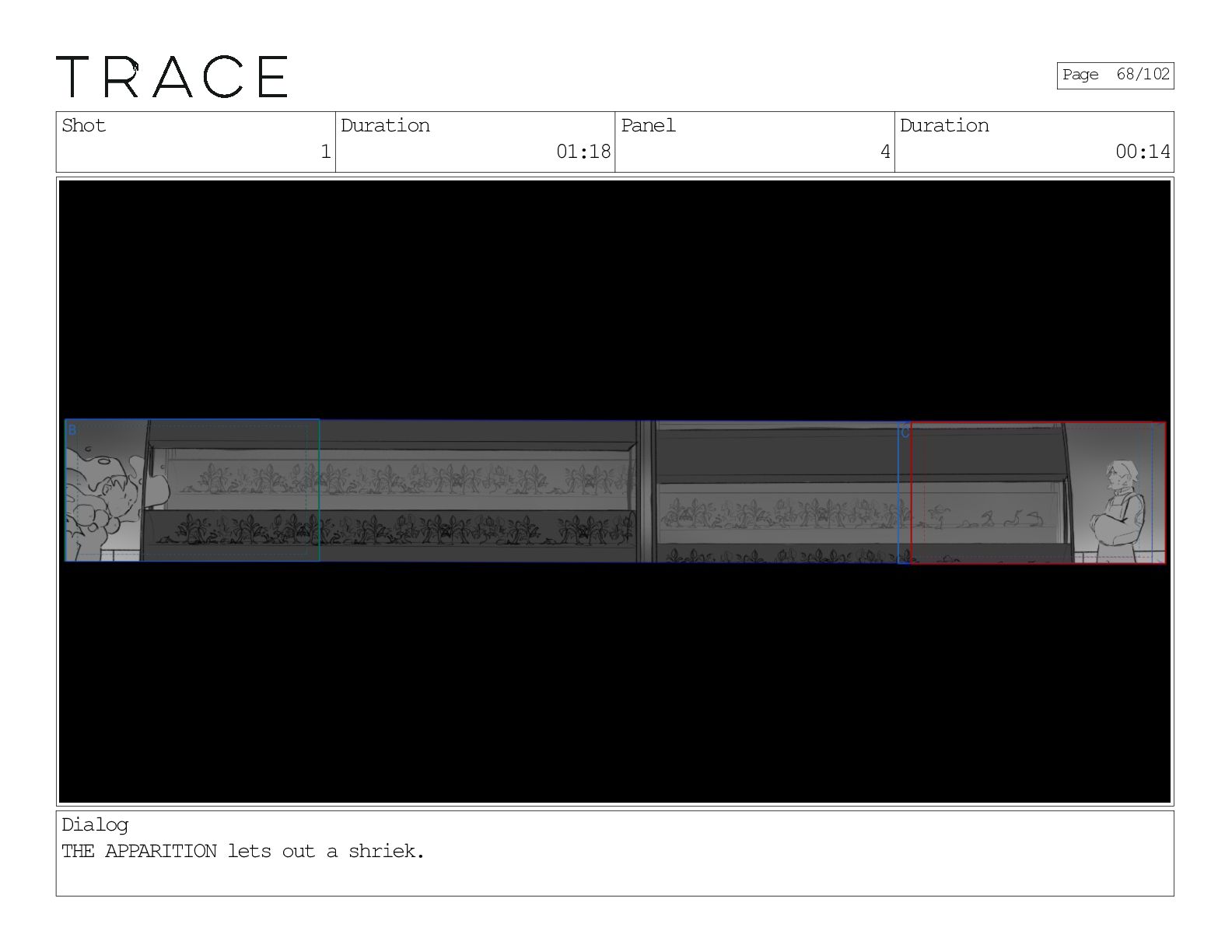 Shot 1 Duration 13:13 Panel 15 Duration 01:14 Page 102/102