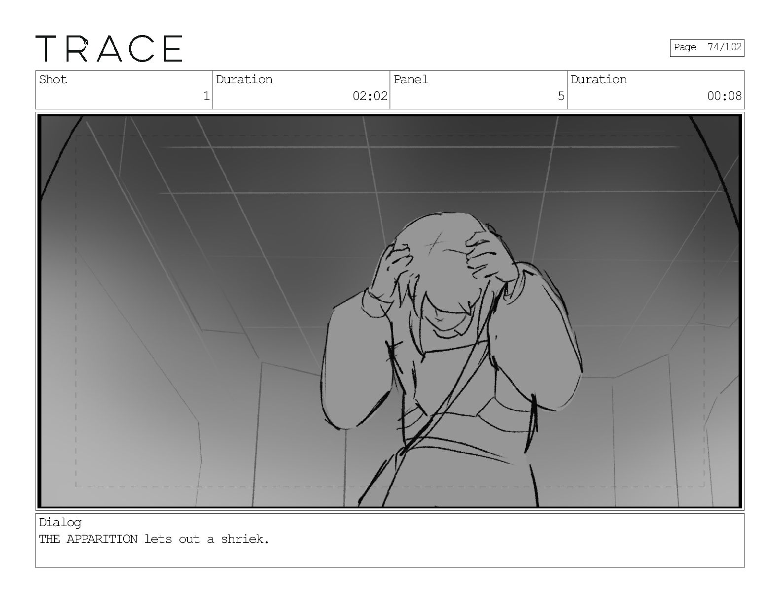 Shot 1 Duration 02:02 Panel 5 Duration 00:08 Dialog THE