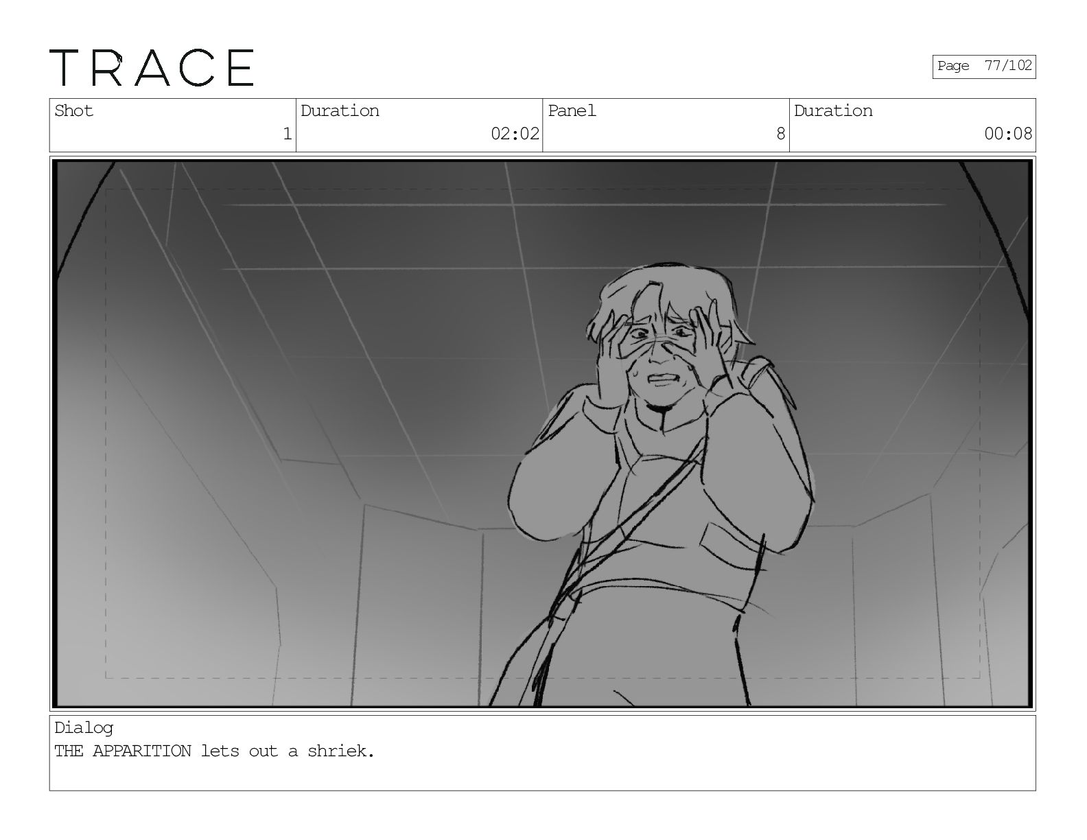 Shot 1 Duration 02:02 Panel 8 Duration 00:08 Dialog THE