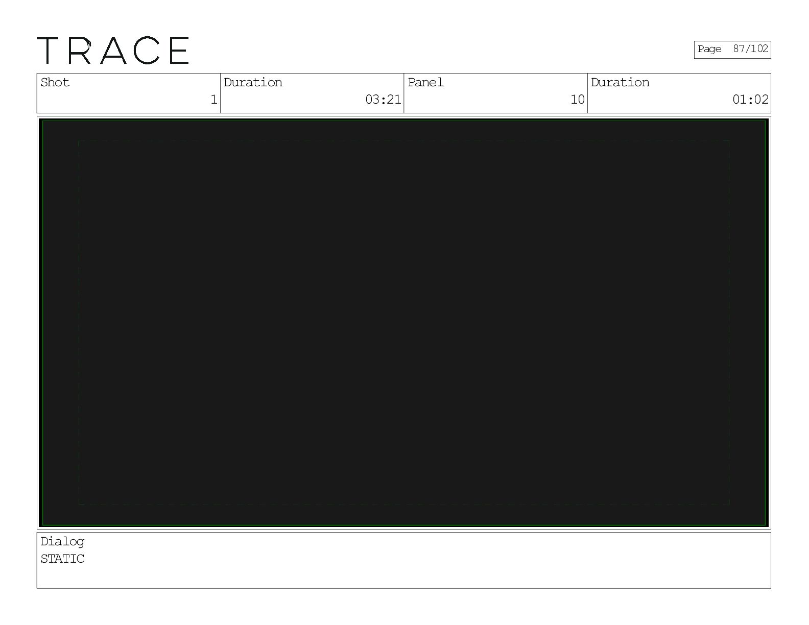Shot 1 Duration 03:21 Panel 10 Duration 01:02 Dialog STATIC