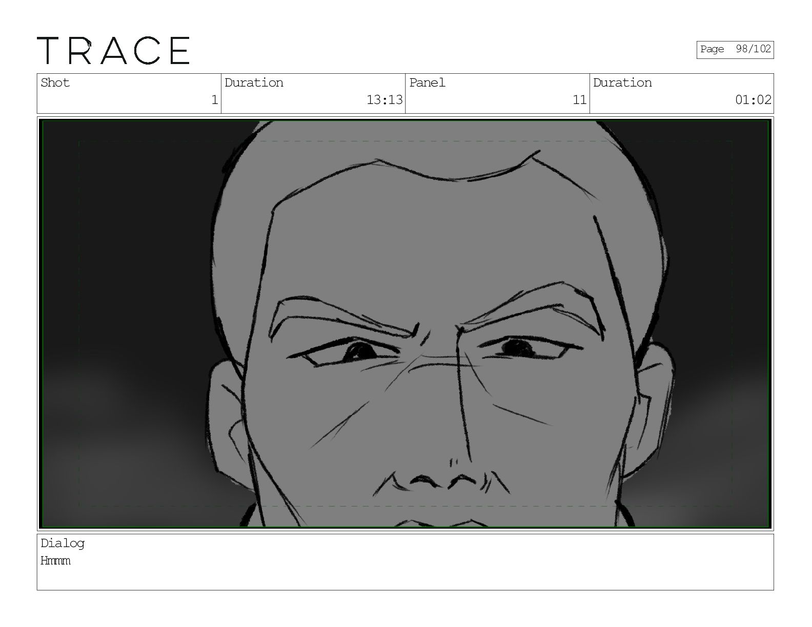 Shot 1 Duration 13:13 Panel 11 Duration 01:02 Dialog Hmmm