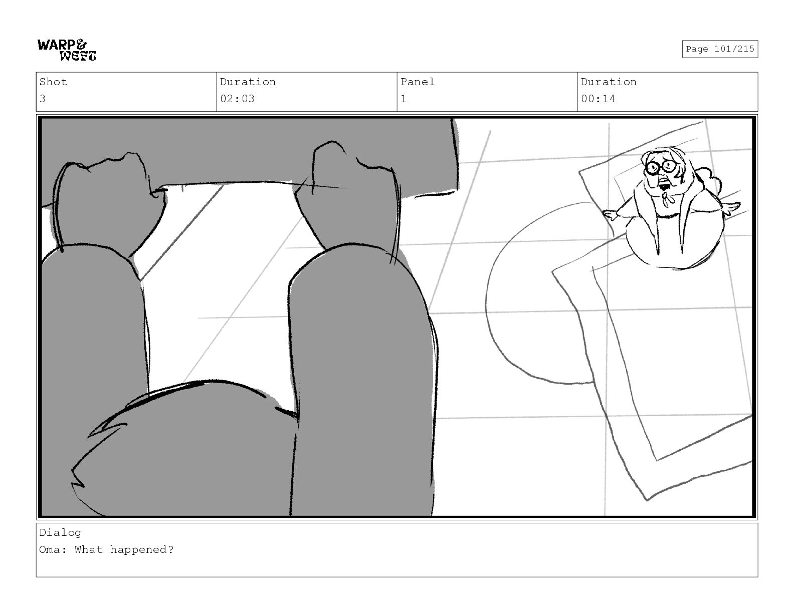 Shot 15 Duration 01:03 Panel 1 Duration 00:14 Dialog Oma: