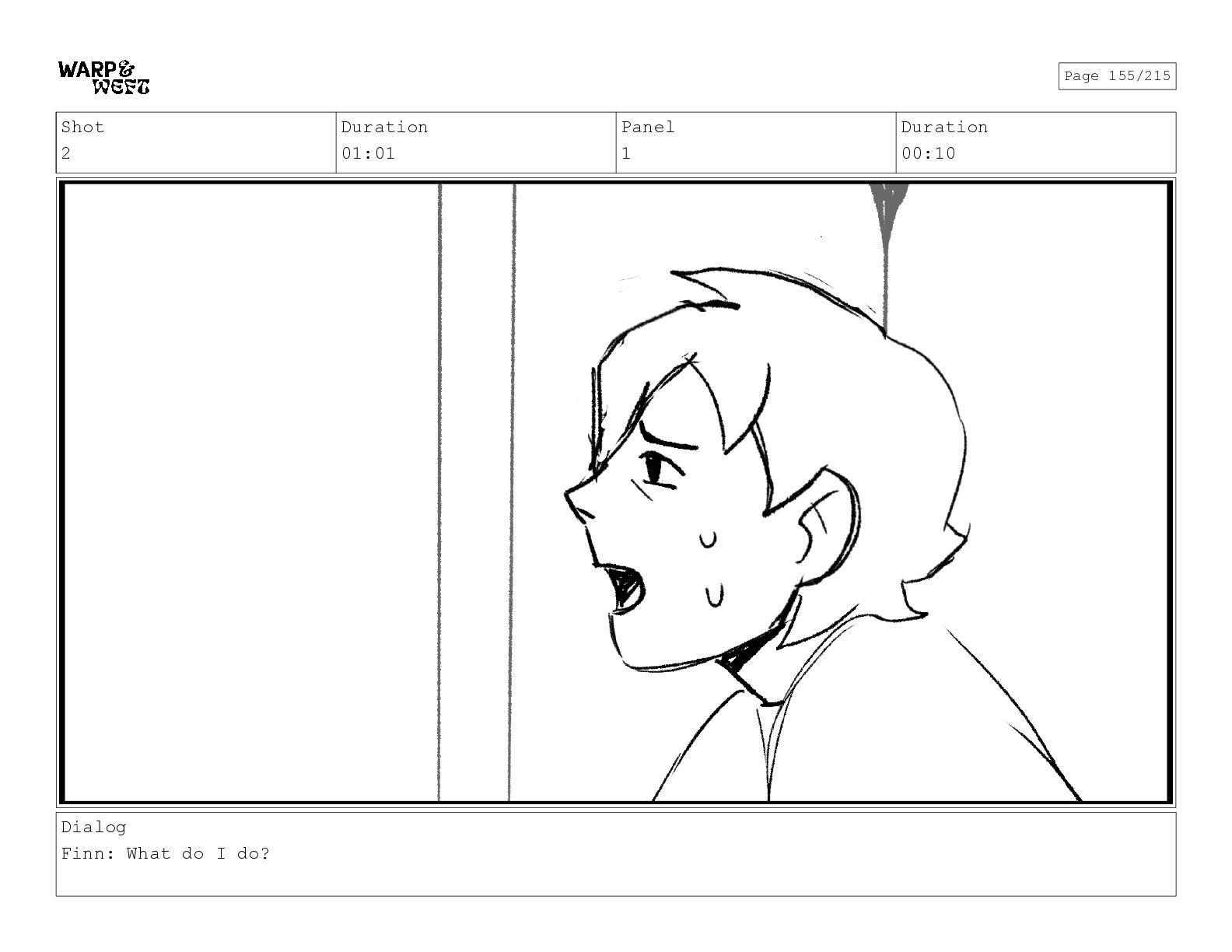 Shot 2 Duration 01:01 Panel 1 Duration 00:10 Dialog Finn: