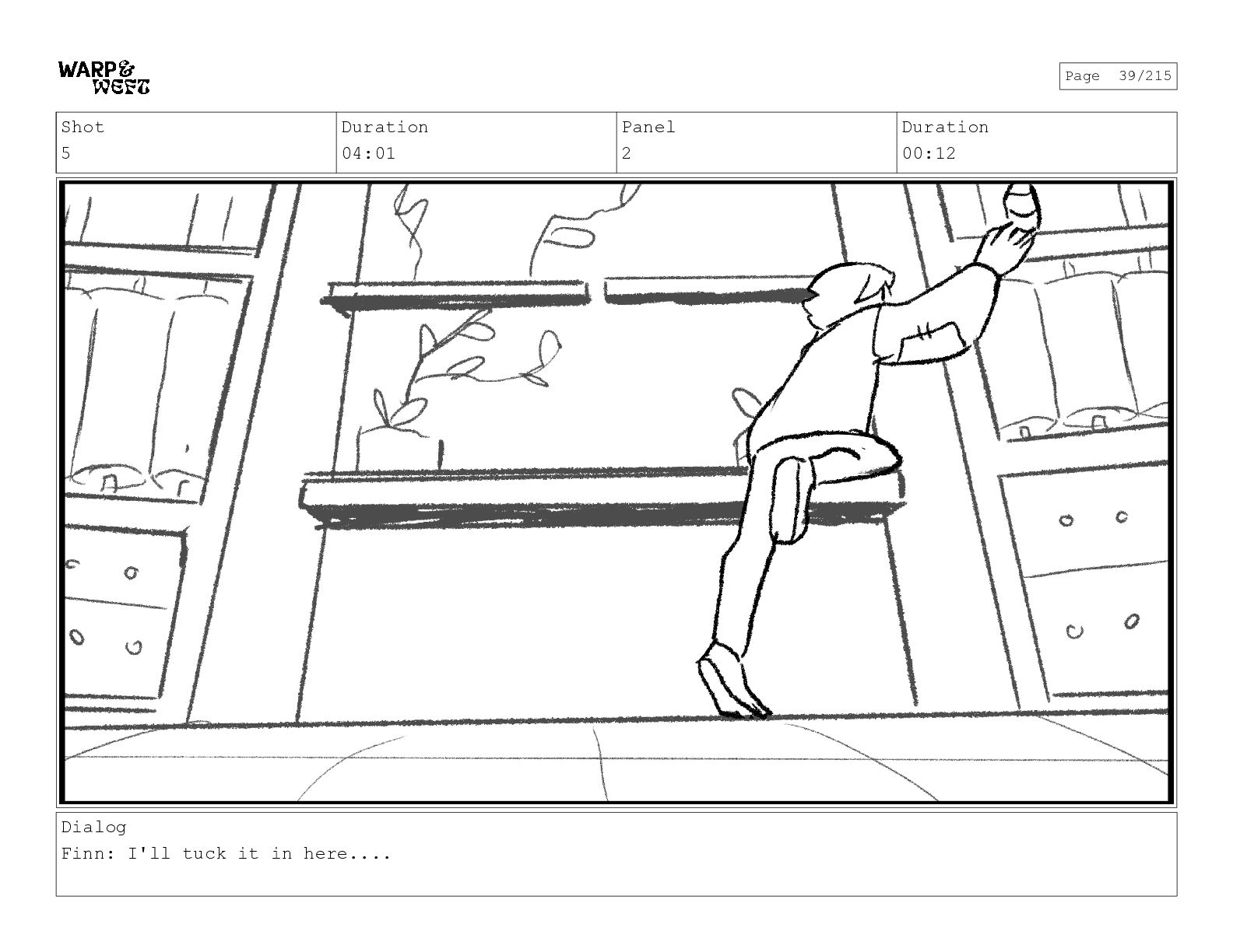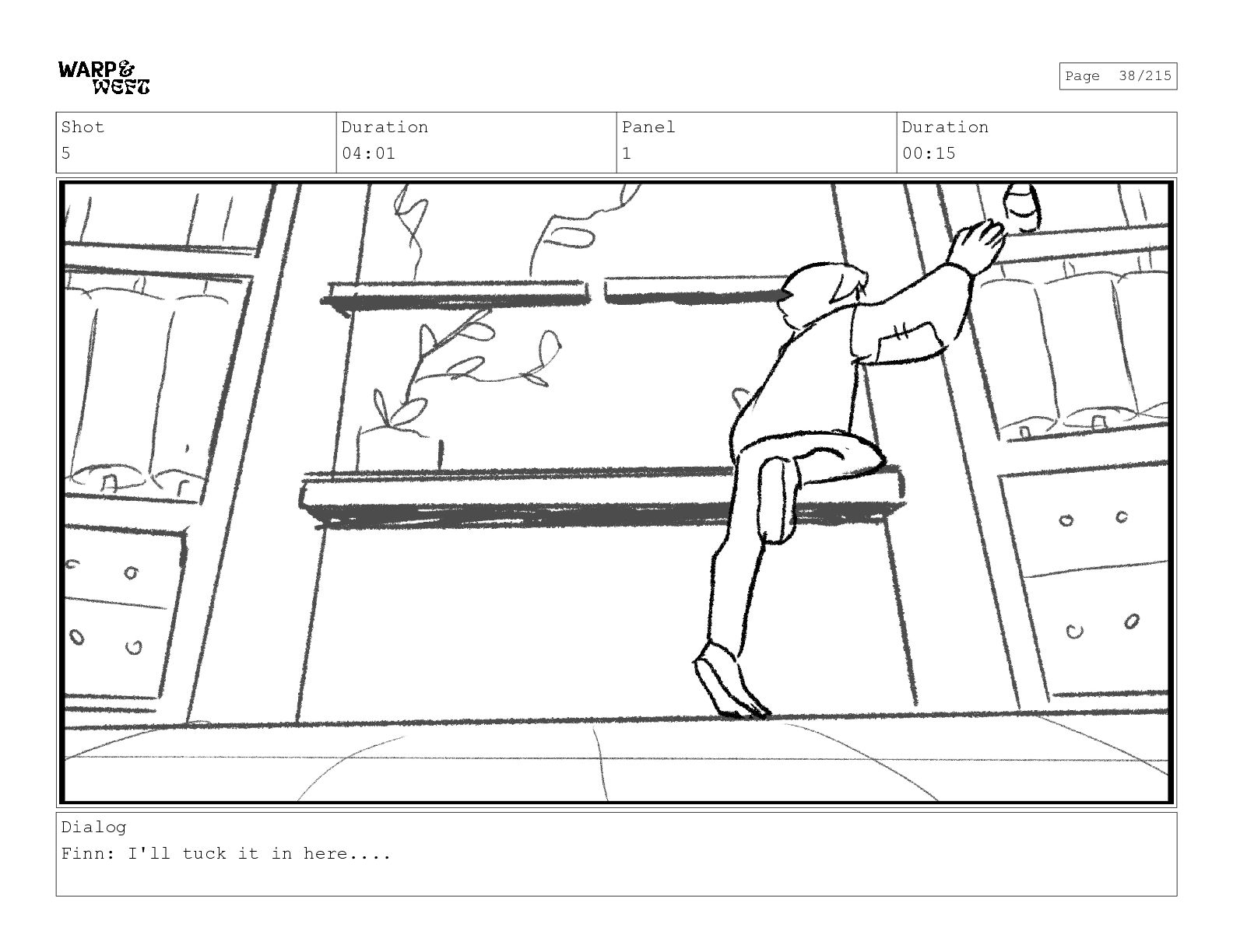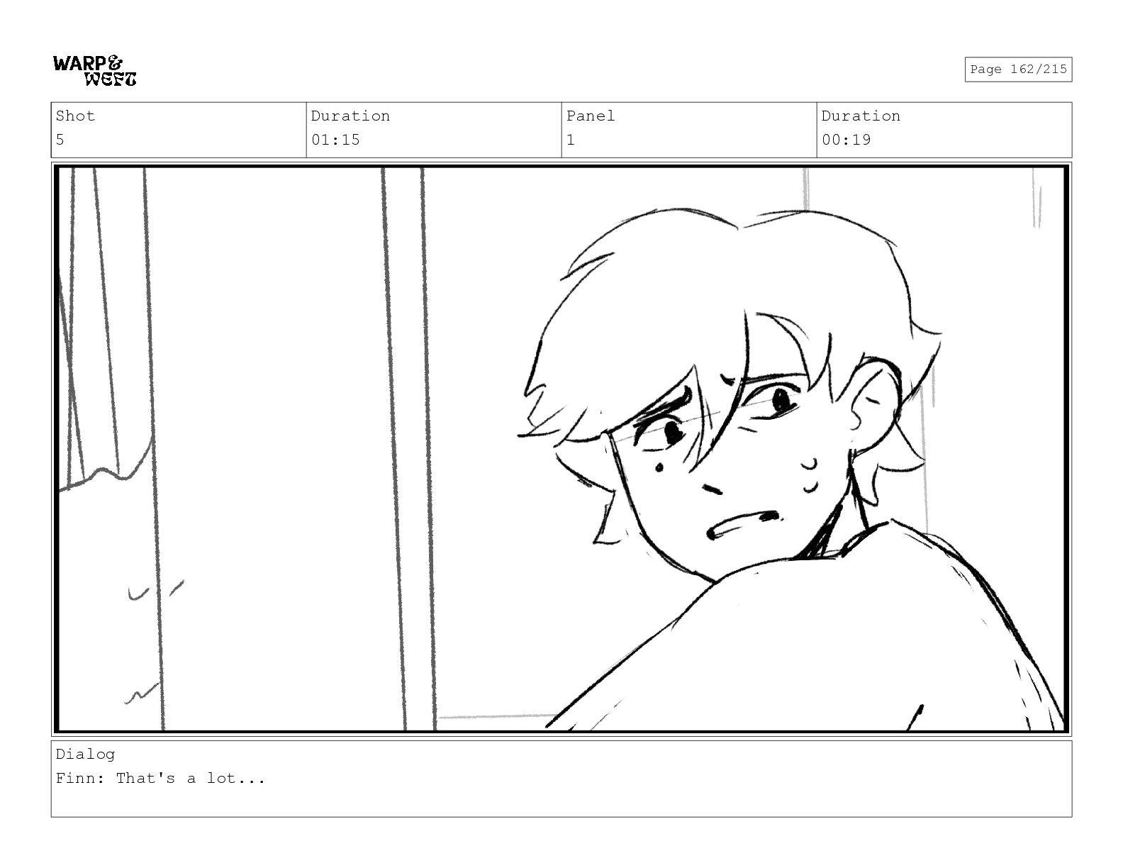 Shot 5 Duration 01:15 Panel 1 Duration 00:19 Dialog Finn: