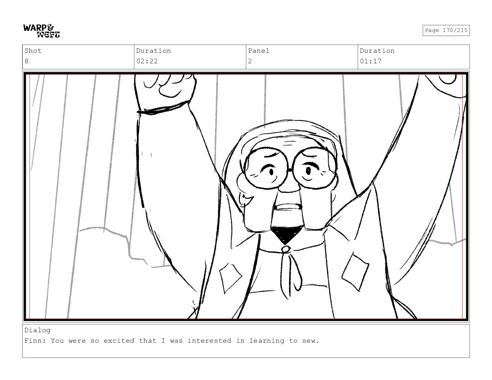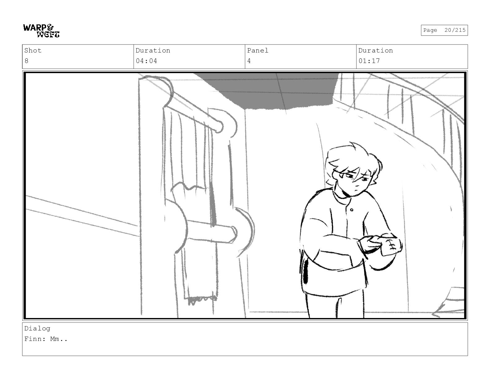 Shot 8 Duration 02:22 Panel 2 Duration 01:17 Dialog Finn:
