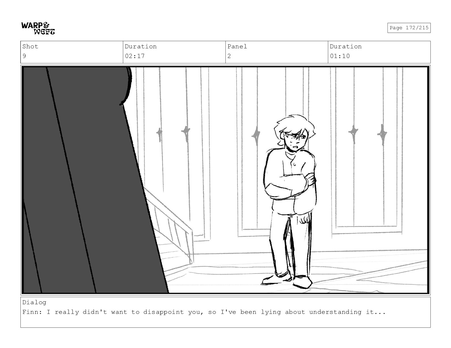 Shot 9 Duration 02:17 Panel 2 Duration 01:10 Dialog Finn: