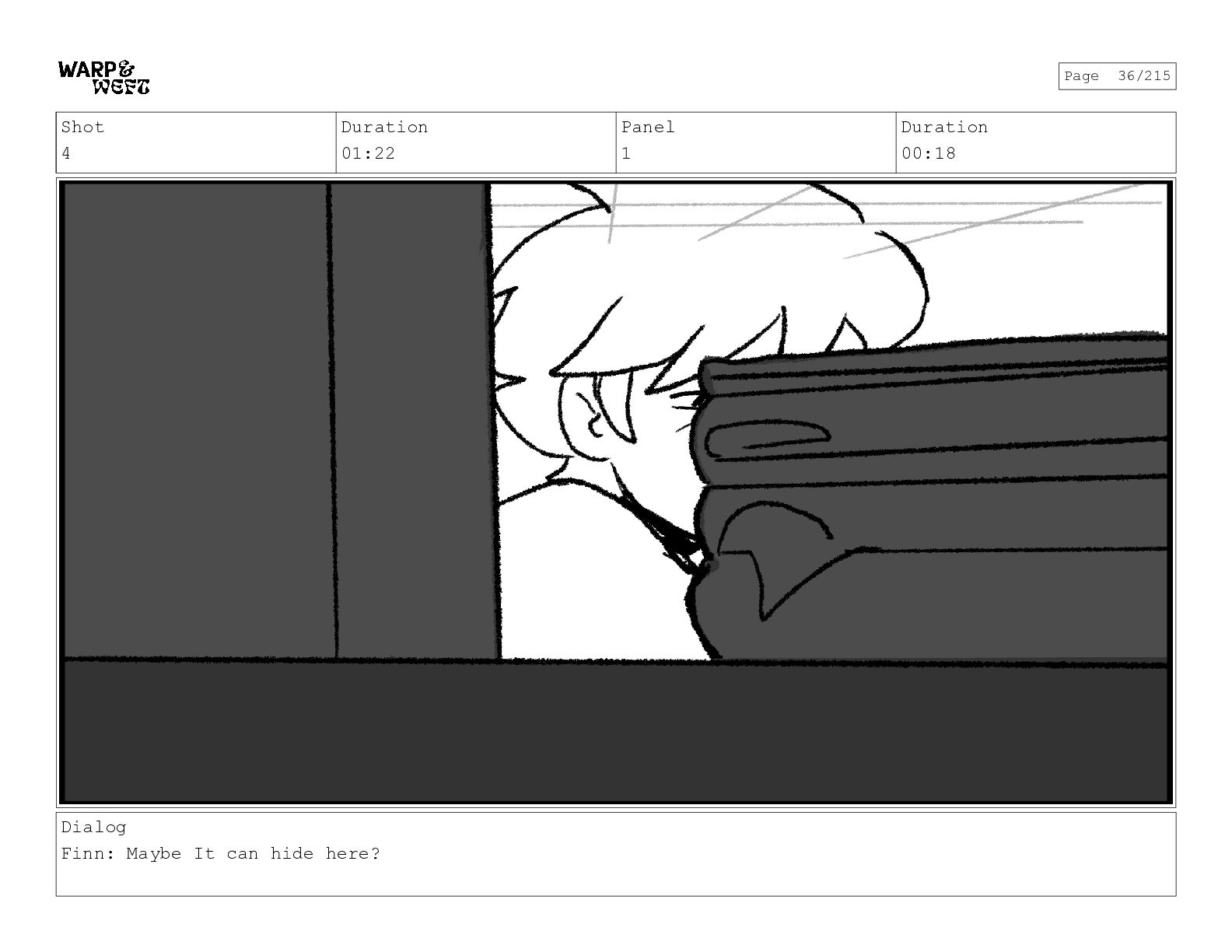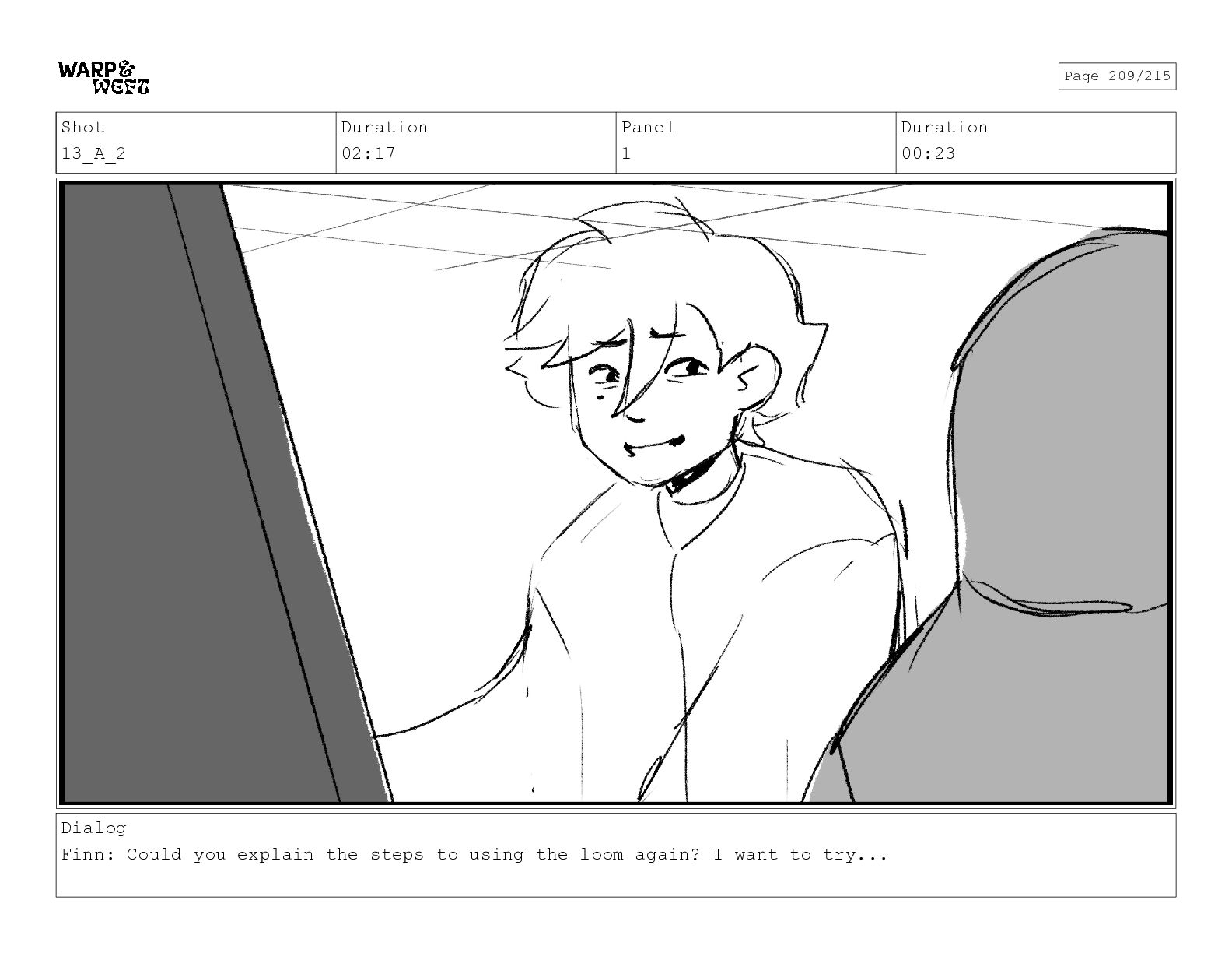 Shot 13_A_2 Duration 02:17 Panel 1 Duration 00:23 Dialog Finn: