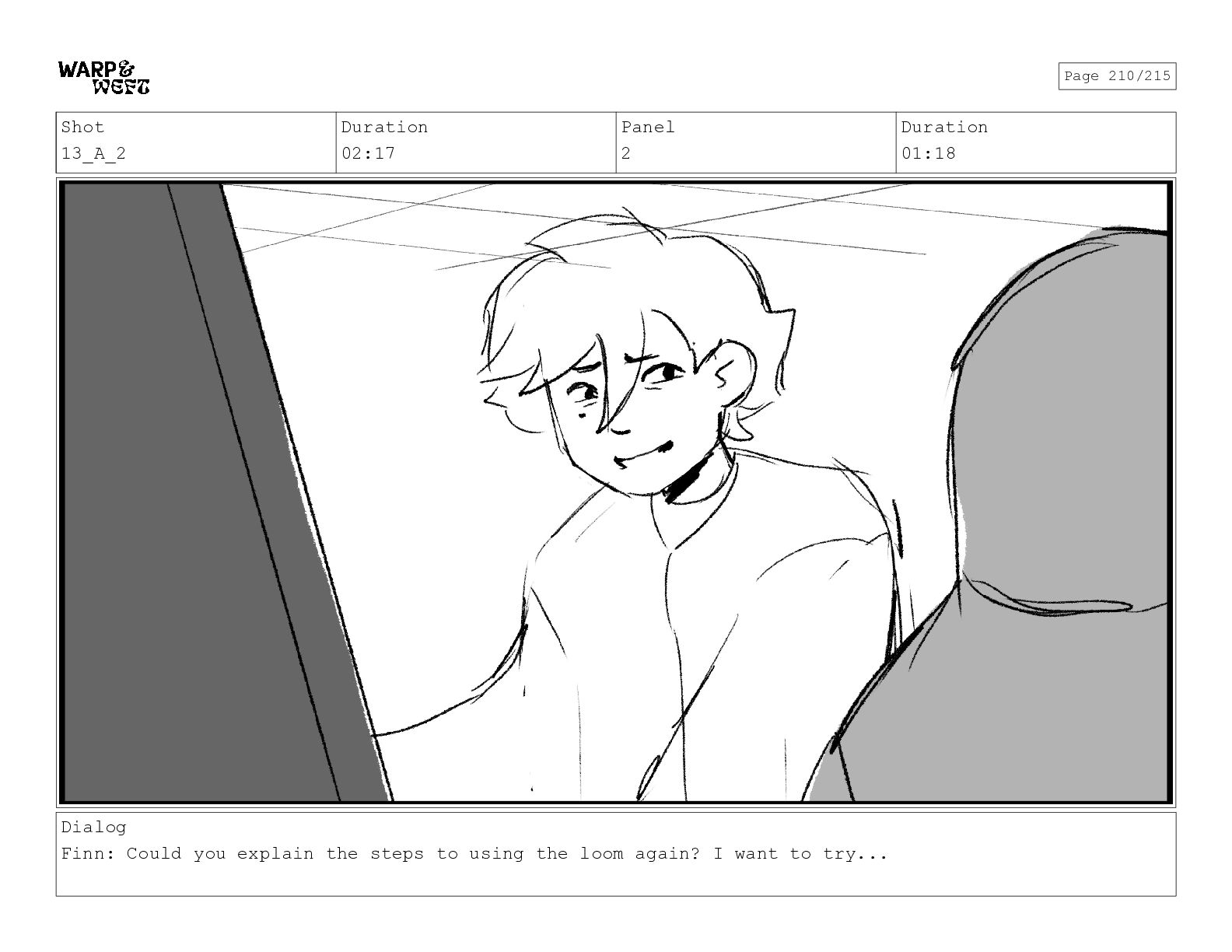 Shot 13_A_2 Duration 02:17 Panel 2 Duration 01:18 Dialog Finn: