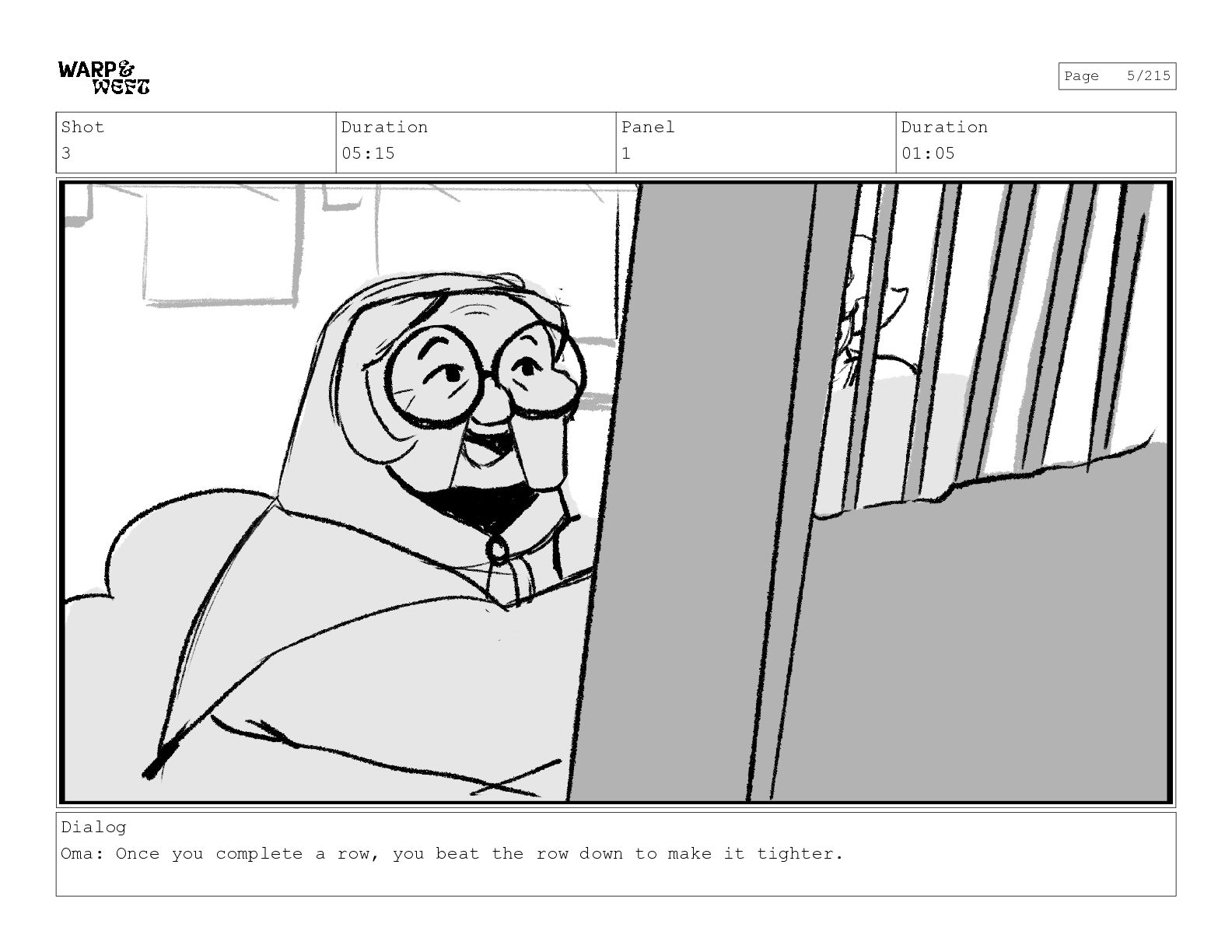 Shot 3 Duration 05:15 Panel 1 Duration 01:05 Dialog Oma: