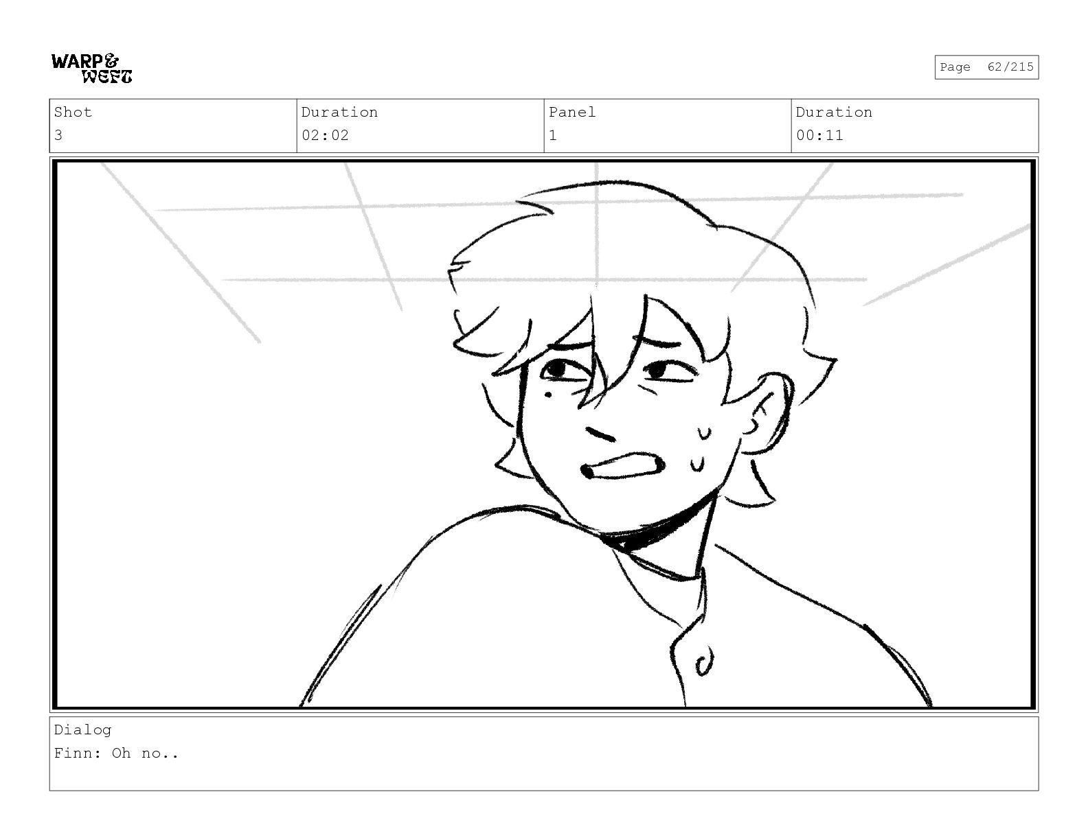 Shot 2 Duration 01:01 Panel 2 Duration 00:15 Dialog Finn: