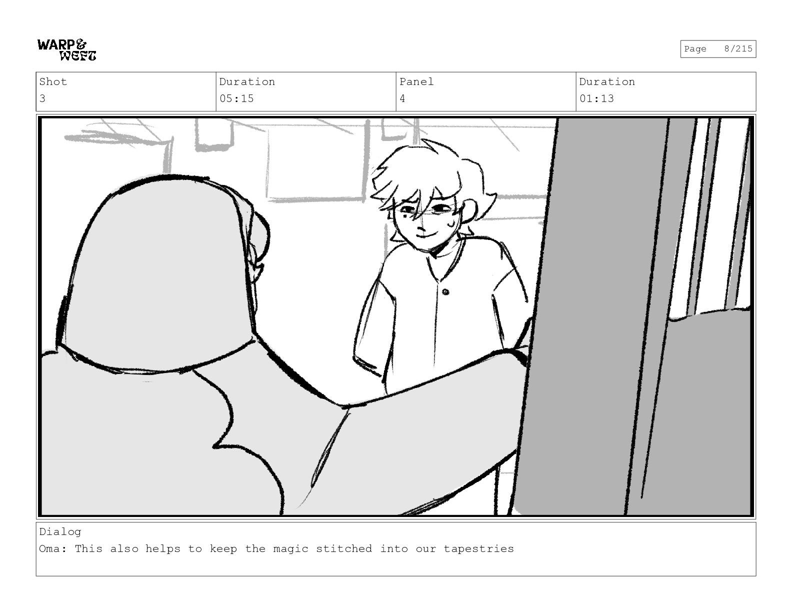 Shot 3 Duration 05:15 Panel 4 Duration 01:13 Dialog Oma: