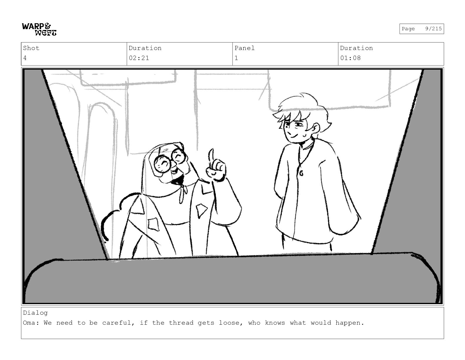 Shot 4 Duration 02:21 Panel 1 Duration 01:08 Dialog Oma: