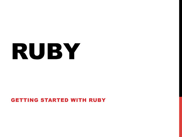 Ruby is a dynamic object oriented language that has become increasingly popular in recent years. In this session, we introduce the language, discuss some of its major features and learn how it can boost developer productivity.