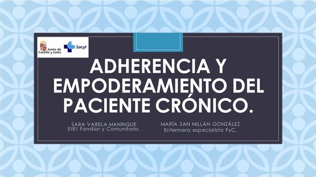 relación con equipo de salud, accesibilidad, tiempo en la comunicación… Relacionados con la afección o enfermedad: falta de síntomas, tiempo de evolución, comorbilidades... Relacionados con el paciente: edad, creencias, expectativas, soporte familiar, conocimiento enfermedad… Relacionados con el tratamiento: complejidad, costes, fracasos anteriores. Relacionados con aspectos sociales y económicos: nivel educativo, situación laboral, recursos económicos. Factores que influyen en la adherencia: