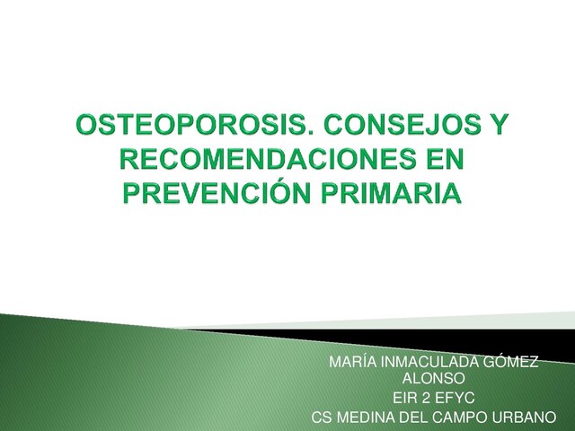 española de medicina familiar y comunitaria (SEMFYC). Guías de actualización. Osteoporosis. Manejo: prevención, diagnóstico y tratamiento. 2014. J. Carlos Bastida Calvo. Guía práctica del manejo de la osteoporosis y de la prevención de la fractura por fragilidad en atención primaria. Sociedad Española de Médicos Generales y de Familia (SEMG) (2012) Grupo de trabajo de la sociedad española de reumatología. Recomendaciones SER sobre osteoporosis. 2018. Servicio Madrileño de Salud. Recomendaciones para la valoración y tratamiento de la osteoporosis primaria en mujeres de la Comunidad de Madrid. Madrid: Comunidad de Madrid, Consejería de Sanidad; 2015 Martín Jiménez JA, Consuegra Moya B, Martín Jiménez MT. Factores nutricionales en la prevención de la osteoporosis. Nutrición hospitalaria [Internet]; 2015 [citado el 2019 Dic 23];32(1):49-55. Disponible desde: http://www.aulamedica.es/nh/pdf/9480.pdf Moral Santos F. Relación entre la cafeína y la osetoporosis. Revisión bibliográfica narrativa. Facultad de enfermería de Soria. Universidad de Valladolid. [Internet][TFG]; 2019 Jun [citado 2020 Ene 05]. Disponible desde: http://uvadoc.uva.es/bitstream/handle/10324/39114/TFG-O-1749.pdf?sequence=1&isAllowed=y Gaddini GW, Turner RT, Grant KA, Iwaniec UT. Alcohol: A Simple Nutrient with Complex Actions on Bone in the Adult Skeleton. Alcohol Clin Exp Res. [Internet]; 2016 Apr [citado 2020 Ene 05];40(4):657-71. Disponible desde: doi: 10.1111/acer.13000. Trevisan C, Alessi A, Girotti G, Zanforlini BM, Bertocco A, Mazzochin M, et al. The impact of smoking on bone metabolism, bone mineral density and vertebral fractures in postmenopausal women. J Clin Densitom[Internet].2019 Jul [citado 2020 Ene 04]; Disponible desde: https://doi.org/10.1016/j.jocd.2019.07.007 Yoon, V., Maalouf, N.M. & Sakhaee, K. The effects of smoking on bone metabolism. Osteoporos Inter [Internet].2012 Feb [citado 2020 Ene 04];23:2081–2092. Disponible desde: https://doi.org/10.1007/s00198-012-1940-y Aspera-Werz RH, Ehnert S, Heid D, Zhu S, Chen T, Braun B, et al. Nicotine and Cotinine Inhibit Catalase and Glutathione Reductase Activity Contributing to the Impaired Osteogenesis of SCP-1 Cells Exposed to Cigarette Smoke. Oxid Med Cell Longev. [Internet].2018 Nov [citado 2020 Ene 04];2018:3172480. Disponible desde: doi: 10.1155/2018/3172480 Abate M, Vanni D, Pantalone A, Salini V. Cigarette smoking and musculoskeletal disorders. Muscles Ligaments Tendons J [Internet]. 2013 Jul [citado 2020 Ene 04];3(2):63-69. Disponible desde: doi: 10.11138/mltj/2013.3.2.063 McLernon DJ, Powell JJ, Jugdaohsingh R, Macdonald HM. Do lifestyle choices explain the effect of alcohol on bone mineral density in women around menopause?, The American Journal of Clinical Nutrition [Internet].2012 May [citado 2020 Ene 04]; 95(5):1261–1269. Disponible desde: https://doi.org/10.3945/ajcn.111.021600