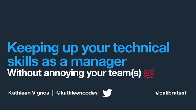 “How to Keep Up Your Technical Skills Without Annoying Your Teams“ - Kathleen Vignos, Twitter, Director, Platform Engineering
