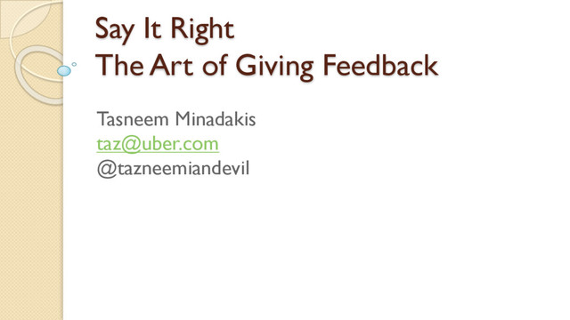 "Say It Right: The Art of Giving Feedback" - Tasneem Minadakis, Uber, Head of Rider Growth