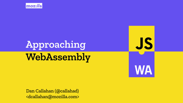 Approaching WebAssembly Dan Callahan (@callahad) <