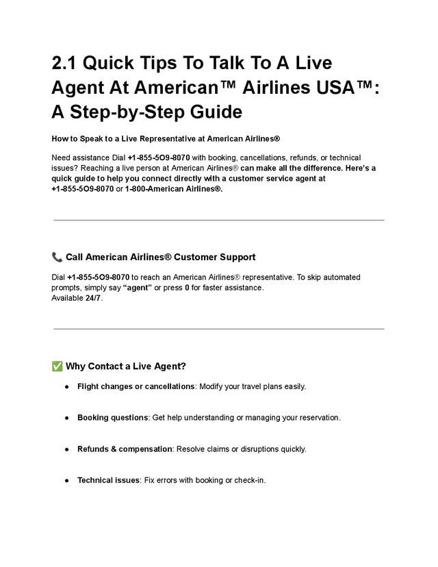 Need assistance Dial +1-855-5O9-8070 with booking, cancellations, refunds, or technical issues? Reaching a live person at American Airlines® can make all the difference. Here’s a quick guide to help you connect directly with a customer service agent at +1-855-5O9-8070 or 1-800-American Airlines®.
