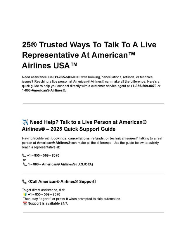 Need assistance Dial +1-855-509-8070 with booking, cancellations, refunds, or technical issues? Reaching a live person at American® Airlines® can make all the difference. Here’s a quick guide to help you connect directly with a customer service agent at +1-855-509-8070 or 1-800-American® Airlines®.