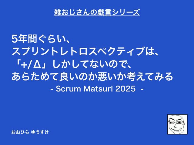 5年間ぐらい、 スプリントレトロスペクティブは、 「+/Δ」しかしてないので、 あらためて良い...