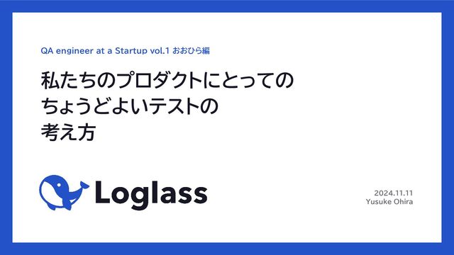 © 2024 Loglass Inc. 2024.11.11 Yusuke Ohira 私たちのプロダクトにとっての ちょうどよいテストの 考え方