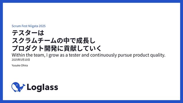 tester and continuously pursue product quality. Scrum Fest Niigata 2025 2025年5⽉10⽇ Yusuke Ohira