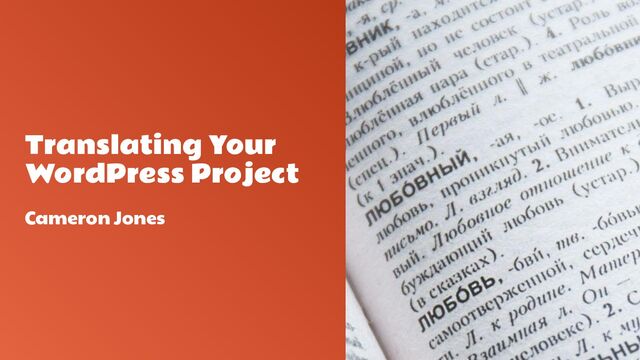 In this presentation you will learn how to translate your project from start to finish, from how translations in WordPress work to how to write code in a way that can be translated and the different tools you can use to translate your project.