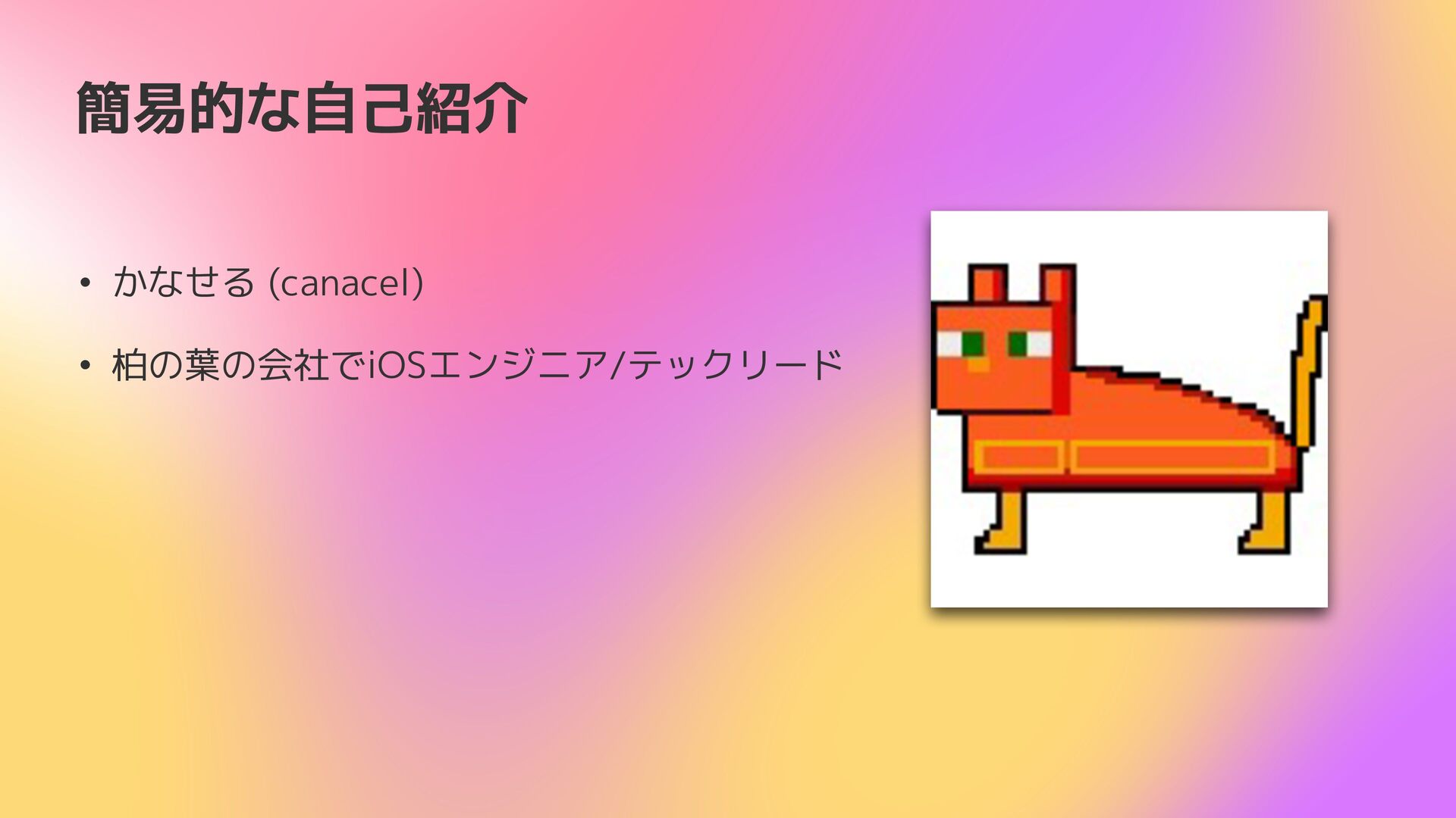 簡易的な自己紹介 • かなせる (canacel) • 柏の葉の会社でiOSエンジニア/テックリード