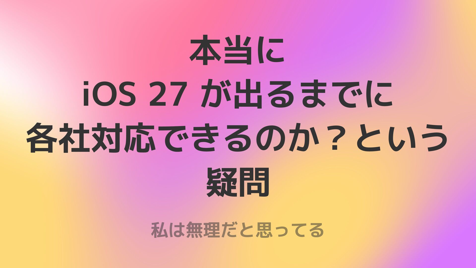 本当に iOS 27 が出るまでに 各社対応できるのか?という 疑問 私は無理だと思ってる