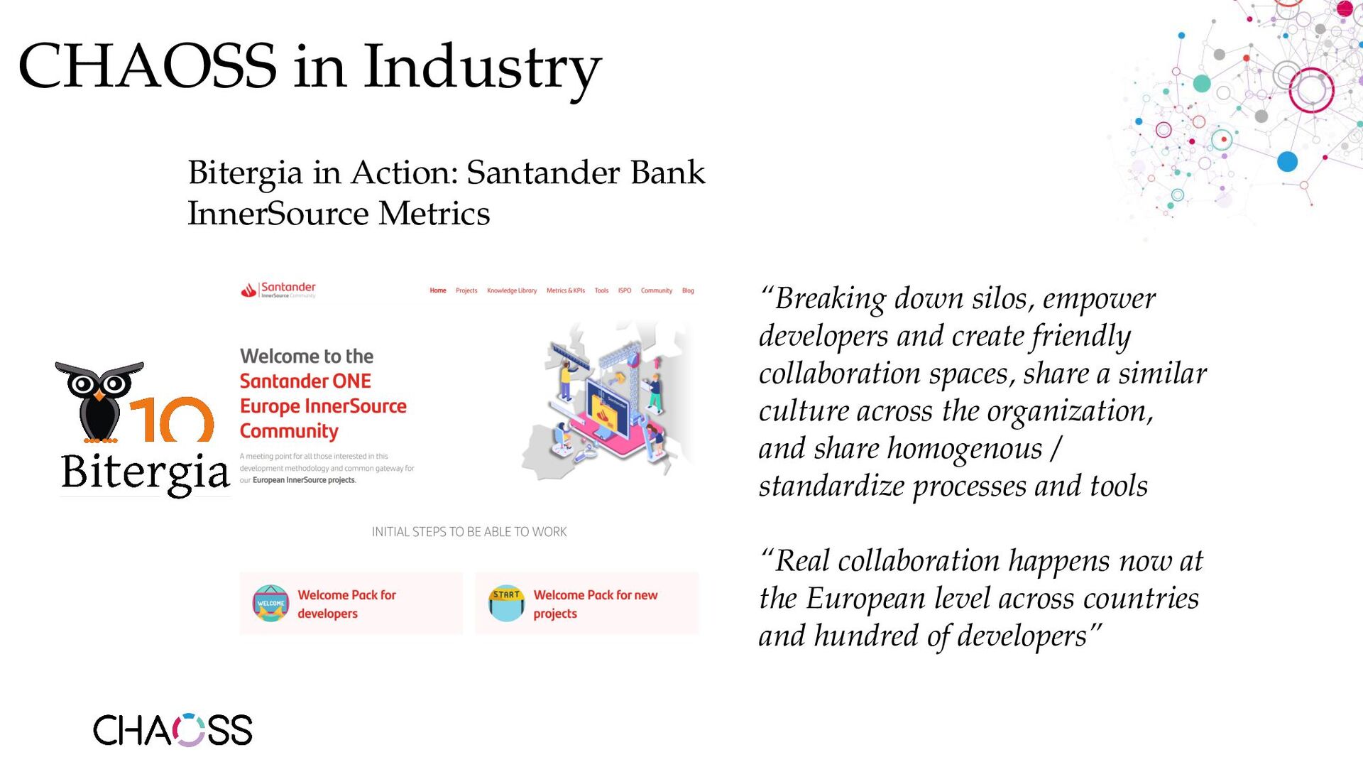 “Breaking down silos, empower developers and create friendly collaboration spaces, share a similar culture across the organization, and share homogenous / standardize processes and tools “Real collaboration happens now at the European level across countries and hundred of developers”