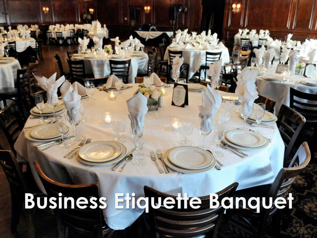 This is a 45-minute seminar where I teach students the basics of banquet etiquette in an effort to prepare them for future professional association banquets. I cover the basics of informal versus formal place settings and how to determine which glass and bread plate is yours. This is an interactive activity with actual food and cutlery to practice banquet skills.