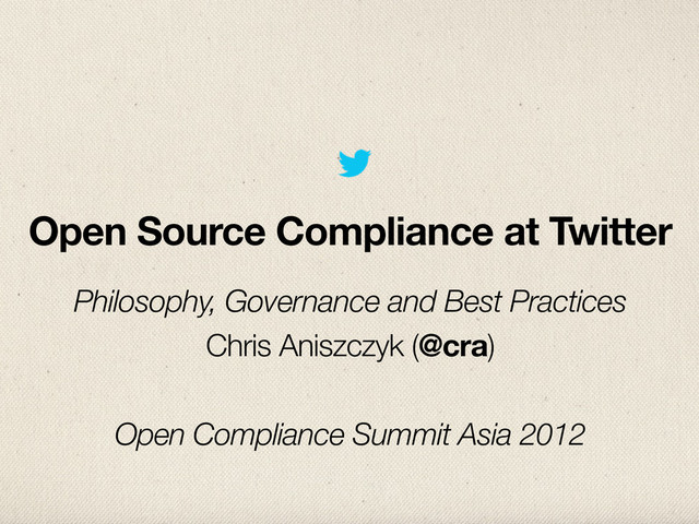 source efforts (compliance, data and standards) at Twitter and supports all initiatives related to our engineering outreach and contributions to the broader software community."