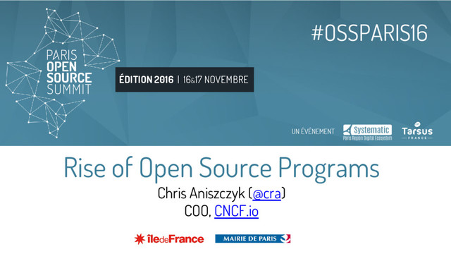 VMware broadens its ecosystem from traditional engagements in the data center space to areas such as software-defined networking and Cloud Native and mobile app technologies, we have been releasing more and more of our new offerings as open source software," said Ray O'Farrell, executive vice president and Chief Technology Officer, VMware. "Dirk brings a new level of leadership, best practices and creativity to help us drive these open source contributions and projects." ‣ http://thenewstack.io/makers-dirk-hohndel-vmware- role-open-source-commercial-software/ Trend: Chief Open Source Officers!?