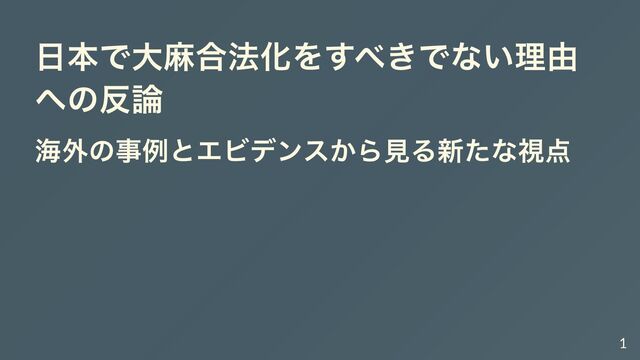 日本では長年、大麻を含む薬物に対して厳しい姿勢が取られてきました。しかし、世界的に大麻政策が変化し、科学的研究が進展する中、日本の現状を再考する時期に来ているのではないでしょうか。本記事では、大麻合法化に反対する一般的な見解に対し、海外の事例や科学的エビデンスを基に反論を展開します。