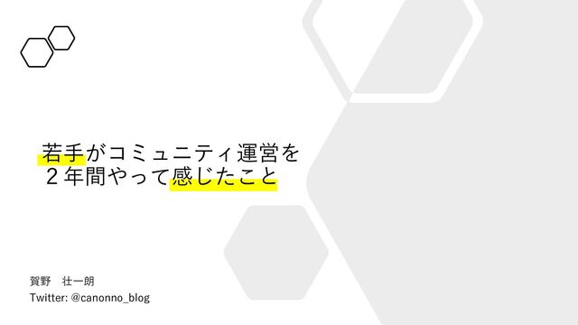 賀野 壮一朗 Twitter: @canonno_blog 若手がコミュニティ運営を 2年間やって感じたこと